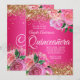 Gold Glitter Hot Pink Floral Glam Quinceañera Invitation