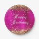 Gold Glitter Hot Pink Foil Happy Birthday Paper Plate