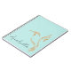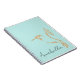 This custom notebook features a hummingbird design on a soft teal coloured background. A beautiful hummingbird is printed across the centre, with a sample name printed beside is in an elegant script font. The outline of the bird is printed in a gold glitter style pattern.