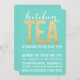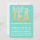 GORGEOUS duck blue aqua (very similar to tiffany blue) pastel coloured modern typography yet with a gorgeous soft vintage look and feel. Add your own text to the template to create this popular, quality, professional, printed glimmering kitchen tea invitation flat card. Gorgeous SOFT blue green aqua coloured paper background with stunning glimmering gold typography.