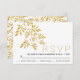 Gold glitter leaves branch modern wedding RSVP card. This lovely and trendy card displays a gold glitter branch with leaves and your wording. In the back there is a pattern of gold glitter leaves.