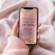 Faux sparkly gold glitter against a light pink faux brushed metal foil background.