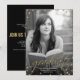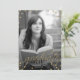 A modern graduation invitation featuring a photo of your grad with gold glitter look script lettering and confetti. The back can be used as an invitation to a graduation party, or cleared to use just as an announcement.