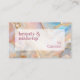 This business card features a stunning opal blush pink, aqua blue, and glamourous gold marble quartz art pattern. Its elegant and eye-catching design is perfect for professionals in the beauty industry, showcasing your style and creativity. With its high-quality print and durable cardstock, this business card is sure to leave a lasting impression on your clients. Stand out from the crowd and make a statement with this stylish and classy business card.