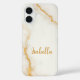 Elevate your phone style with this Personalised Gold Glitter Marble Stylish iPhone 16 Case. Featuring a sleek white with gold glitter marble background with a customisable name template, this stylish design combines an elegant look with personalisation. Perfect for everyday use or as a thoughtful gift for her, this case adds both protection and a touch of sophistication to your device. Note that glitter gold is FAUX.