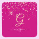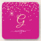 Gold Glitter & Monogram White Script Name, Fuchsia Coaster