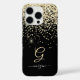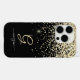 Gold Glitter & Monogram White Script Name on Black Case-Mate iPhone Case