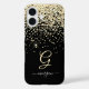Gold Glitter & Monogram White Script Name on Black Case-Mate iPhone Case