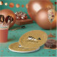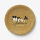 Gold glitter Mr and Mrs wedding paper plates. Golden paperplates with faux sparkles and glitter print plus date of marriage. Disposable festive dinner party supplies printed for elegant wedding , chic bridal shower, fancy engagement, classy anniversary etc Printed with sparkly and shiny glimmers plus last family name of bride and groom couple / newly weds husband and wife.