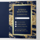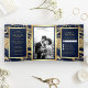 Gold Glitter Navy Blue Marble Photo Wedding Tri-Fold Invitation