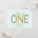 GOLD GLITTER ONE Blue Stripe 1st Party Invitations