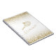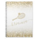 Pretty gold and white tennis racket and ball monogram notebook design with a modern and trendy faux gold glitter border and girly feminine script name personalisation.