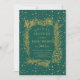 Gold pine frame with cone confetti evergreen green winter Christmas wedding bridal shower Invitation. A lovely wedding design that includes a gold pine frame with cone and needles and gold confetti borders on green background. The back is covered with a gold confetti.
