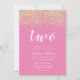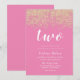 Gold Glitter Pink Girls 2nd Birthday Party Invitation