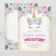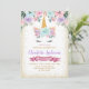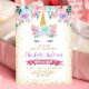 Gold Glitter Pink Purple Floral Unicorn Birthday Invitation