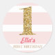 Gold Glitter & Pink Stripe First Birthday Stickers