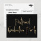 The front of the postcard is solid black (which you can change to any colour you prefer) over which I've placed a graphic that reads "Postponed Graduation Party" in a modern handwriting font. This text graphic has been embellished with a faux gold glitter effect. On the reverse I've placed template fields so you can add your own personal details. Change any of these as you see fit. You may also change font on the back, if you wish.