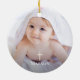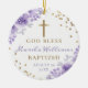 Gold Glitter Purple Floral Girl Baptism Photo Ceramic Ornament