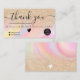 Modern gold glitter ombre sparkles pink rainbow unicorn marble pastel holographic business order thank you. Add your social media. With an elegant signature script font, add your logo.