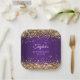 Faux sparkly gold glitter against a royal purple ombre or gradient background.