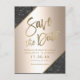 Gold typography on metallic foil black glitter gold glitter colour block, and faux gold geometric stripes chic save the date wedding , perfect for elegant, stylish wedding,