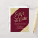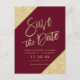 Gold typography on customisable marsala red gold glitter colour block, and faux gold geometric stripes chic save the date wedding , perfect for elegant, stylish wedding,