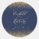 Gold Glitter Script Navy Blue Wedding Classic Round Sticker