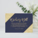 Gold typography on customisable navy blue gold glitter colour block, and faux gold geometric stripes chic wishing well wedding , perfect for elegant, stylish wedding,