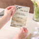 Elegant vellum wedding Save the Date overlay featuring a script text on a gold glitter sparkly (printed) design. Please note that this is only the overlay, the background invitation (or your custom photo) needs to be purchased separately.