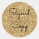 Create your own "signed copy" stickers against a photo of glitter (faux glitter, not actual flakes). Customise the font style, colour and size.