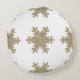 Gold Glitter Snowflake Pattern White Christmas Round Cushion
