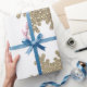 Gold Glitter Snowflake Pattern White Christmas Wrapping Paper