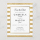 With a classic gold glitter stripes, this elegant save the date card features an elegant faux gold foil border framing your save the date details set in chic typography. Designed by Thisisnotme©