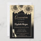 Gold Glitter Sunflowers,Wine Glass Quinceanera Invitation