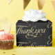 Image of an elegant faux diamond glitter and gold thank you text design pattern over custom black background.