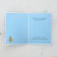 Chic modern Christmas greeting card, with graphics of a blue and gold vertical striped foil and glitter look. A white oval area, on the front of the card has graphics of a gold glitter Christmas tree silhouette. The inside of the card is done in blue with black text ready to personalise. #holidayZ