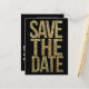Faux Gold Glitter Save the Date Typography on bold black background. a bold, strong, trendy designer typography Wedding Save the Date Postcard template to suit most weddings. Whether black and white is your theme, you're having a night wedding, a gold glitter wedding, a modern wedding... this affordable designer post card design is for you!