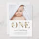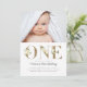 Gold Glitter Watercolor Floral Photo 1st Birthday Invitation