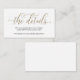 Use business cards to easily and efficiently communicate RSVP and wedding details. Beautiful calligraphy in faux gold glitter adds a touch of elegance.