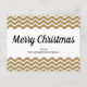 Gold Glitter White Chevron Stripes Merry Christmas Postcard