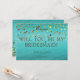 This 5" x 7" green gold glitter beautiful bridesmaid invitation card. This is best for the bride, who loves gold colours and polka dots. It is a truly fun way to ask your very lover or girl friend to be a part of your bridal.