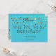This 5" x 7" Turquoise gold glitter beautiful bridesmaid invitation card. This is best for the bride, who loves gold colours and polka dots. It is a truly fun way to ask your very lover or girl friend to be a part of your bridal.