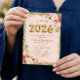 Gold Glitters Pink Floral Balloons 2023 Graduation Invitation
