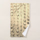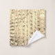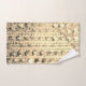 On this stylish bath towel set are gold strings of beads with a gold glitter edging on a gold ribbon on the big towel where you can personalise it. Elegant chic vibes.