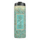 Gold Glittery Feathers Monogram on Turquoise Thermal Tumbler