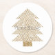 Gold Glitzy Glitter Christmas Tree Round Paper Coaster