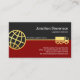 At the top lies your prestigious name and job title alongside a slogan option you can change near the globe. Towards the base is the business name and its contact details.