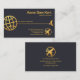 At the top are your prestigious name and job title alongside a slogan option near the gold globe. Towards the base lies a gold logo of an airplane with your business name and contact details.