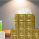 Decorative and elegant gold gift wrapping paper featuring shiny gold squares intricately linked to produce a captivating 3D illusion.