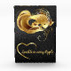Black foil background with a gold heart, text and goldfish for you to personalize to your needs. Sparkle in every ripple!